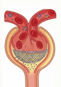 糸球体は毛細血管でできていますが、ざっくり言うと、小さい物質だけを通す“ざる“みたいなものです。